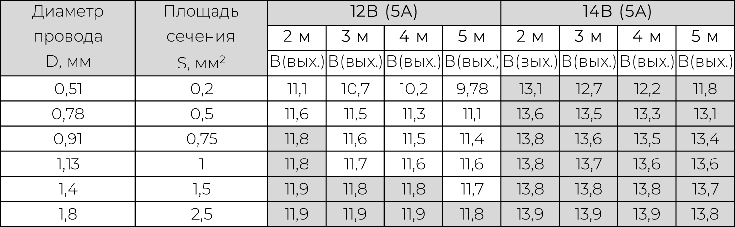 Итак, если проблема существует, значит на ваших дверях замок работает на "границе" необходимой мощности и дело здесь в 99% случаев не в возможностях замка. Поэтому, если вам не сильно хочется разбираться в нюансах, не всегда понятно как далеко от двери будет находиться Блок питания, бывают проблемы с монтажем двери и т.д., мы советуем заранее закладывать в проект Блок питания напряжением 14В (5А-6А). Это позволит вам нивелировать в большинстве случаев и расстояние до источника питания, и сечение провода, который вы должны пропустить через "гибкий переход", и небольшие ошибки при монтаже - достаточно посмотреть в таблицу, чтобы понять, что в любом случае вы попадаете в тяговое значение большее 15кг. Смеем надеяться, что ни один набор уплотнителей не может оказать такое перпендикулярное полотну двери давление на защелку.